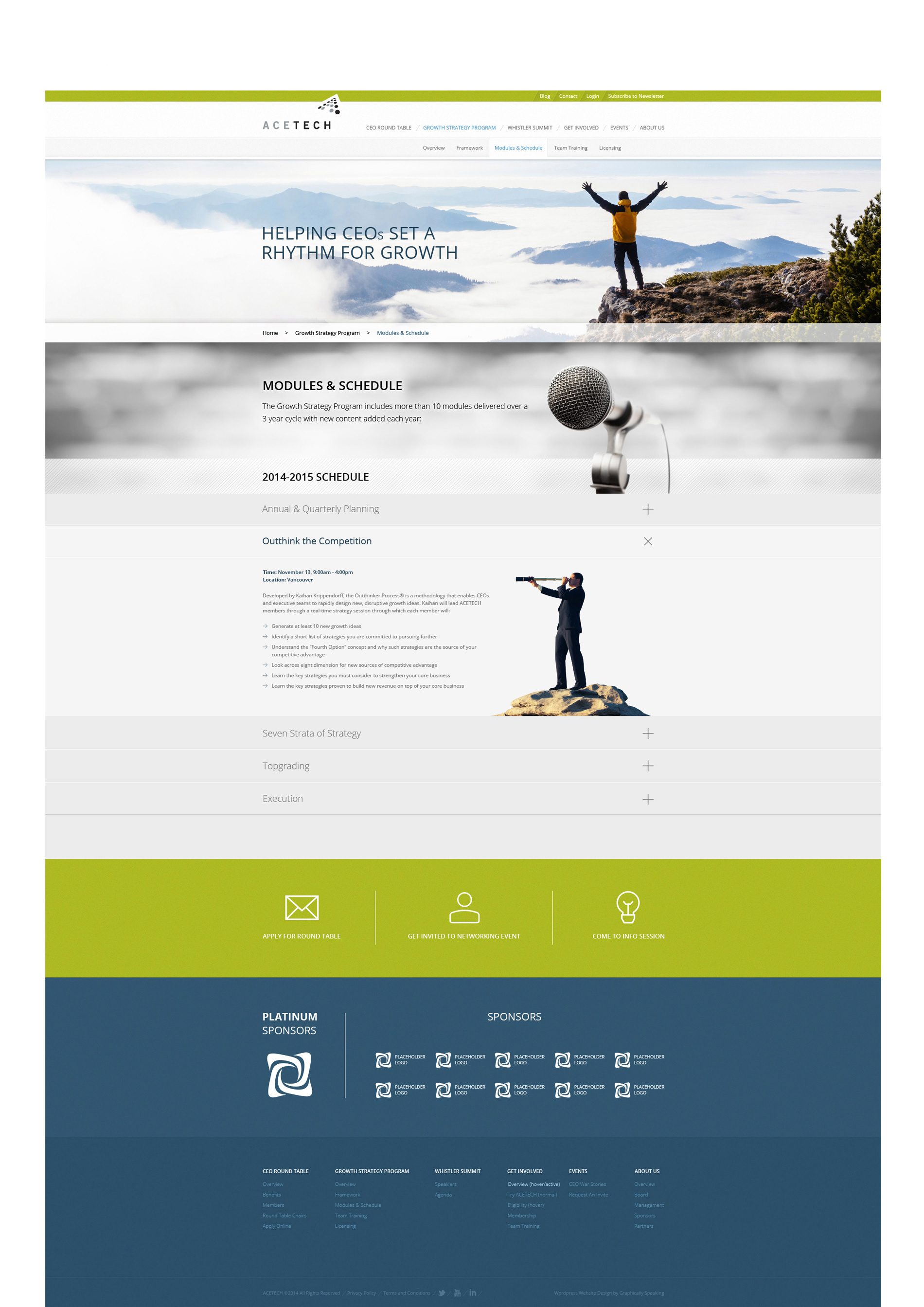 Acetech is an organization that serves CEOs of technology-innovating companies. This website design project comes from the web and graphic design agency Graphically Speaking. The project aimed to spotlight the company’s member-based model, which offers continuous engagement, learning, and support. The webpage design shows professionalism and gives viewers a sense of accomplishment. It features clear navigation for effortless browsing and information retrieval. The prominent call-to-action buttons encourage viewers to take steps and become involved. The collapsible info box maintains a neat and uncluttered page appearance.