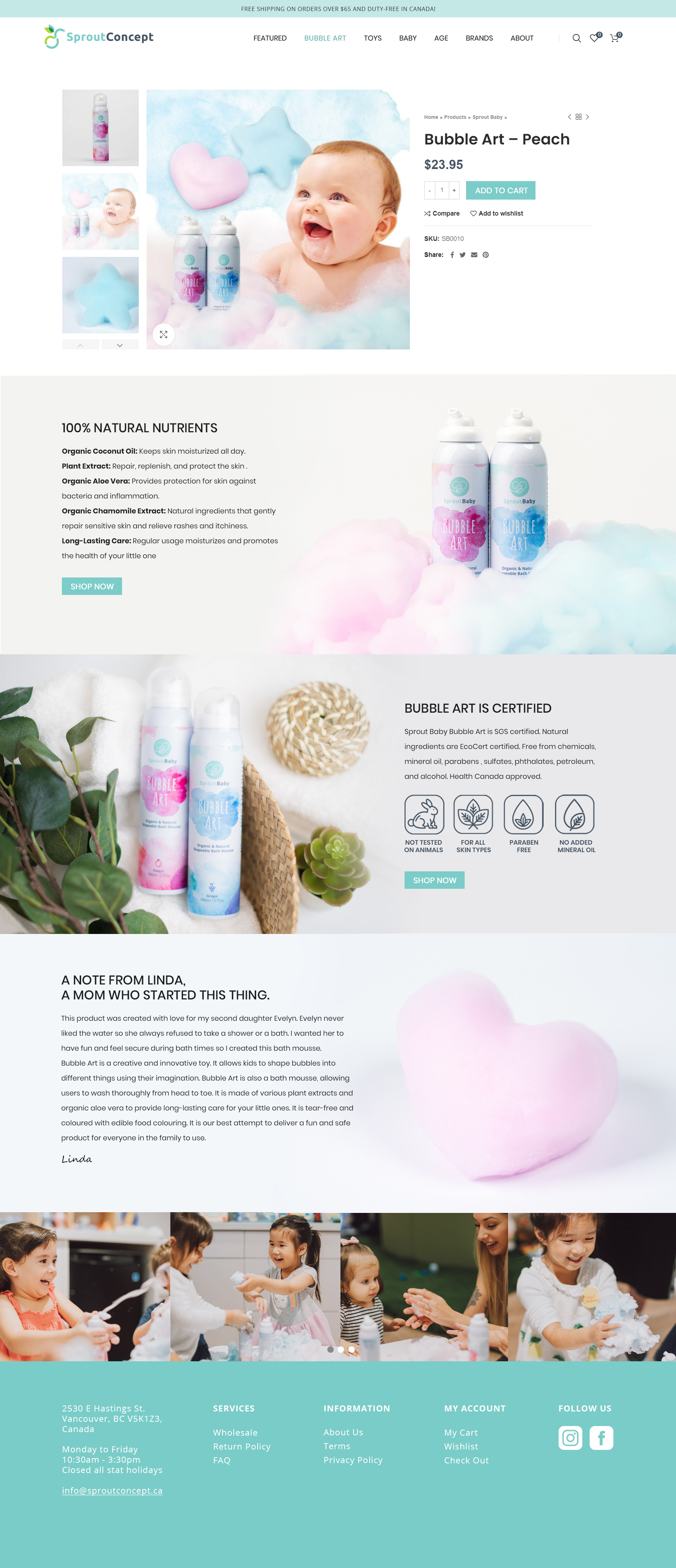 The design concept for Bubble Art's custom product page places a strong emphasis on sleek and clear information presentation. By keeping things simple, the aim is to create a smooth and organized interface that matches the brand's style.