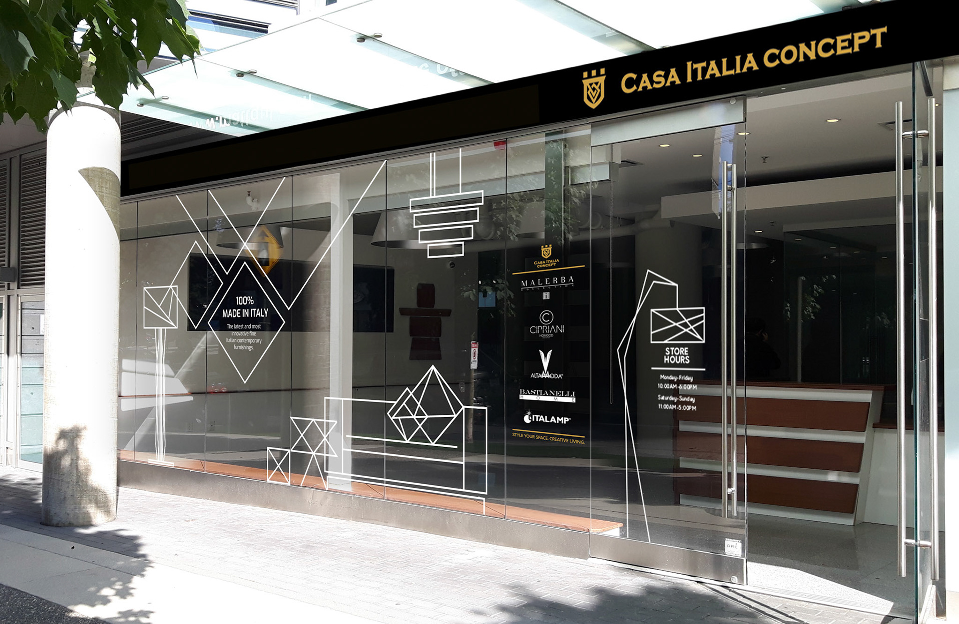 Casa Italia Concept is a high-end furniture store that offers affordable luxury home products, dedicated to providing only the finest in European luxury furniture brands. This window vinyl design captures the essence of luxury living for a high-end furniture store. The minimalist aesthetic of line illustration showcases the store's sophisticated and modern style. The seamless integration of furniture invites passersby to envision their own elegant living spaces. The sandwich board design uses close-up imagery to showcase the store's highest-quality furniture collections. The image and information are concise and clear, making the business more noticeable from the sidewalk.