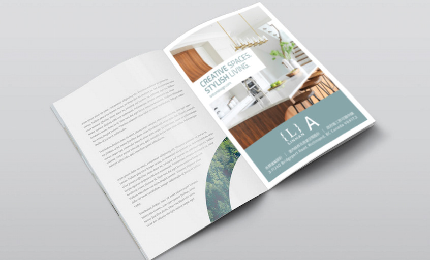 Linhan Design & Interiors Co. is an award-winning boutique design firm specializing in residential and commercial design. Experience 'Minimalist Chic' through the marketing material designs, where the principle of less is more and elegance is paramount. The design embraces clean lines, abundant white space, and a refined colour palette that mirrors Linhan's modern interior design ethos. The marketing materials showcase an uncluttered yet sleek visual aesthetic for viewers.